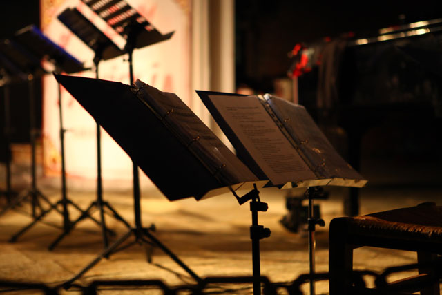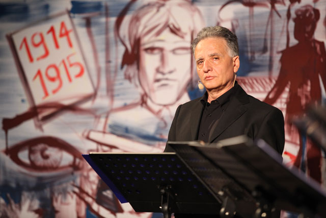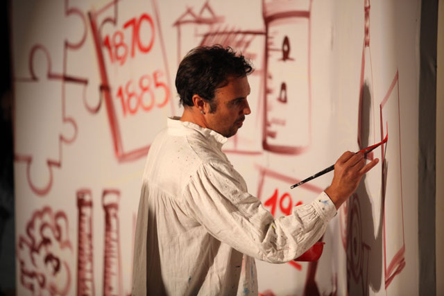 Tosto’s central idea was “to evoke the places, the characters and the situations through voice, music and images.” Therefore, he complemented the actors’ voices with original music played by the company ensemble, and a stage artist who illustrated the action as it unfolded.