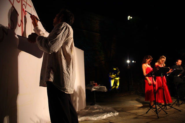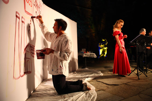 Tonino Tosto, director of Gruppo Teatro Essere, got the assignment for the theatrical adaptation, and also directed the play. The park of the castle provided a poetic natural stage for the show.